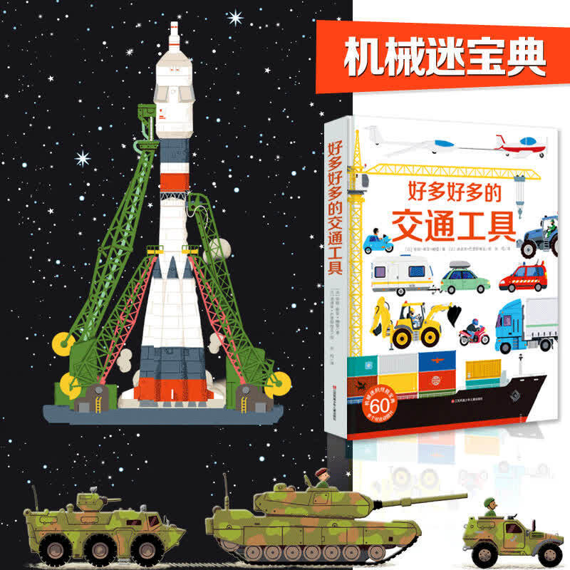 一本带有可活动图片的大书,带你了解机械设备和各种交通工具是如何运转的,看看有哪些车轮在滚动、哪些飞机在飞行、哪些轮船在航行。