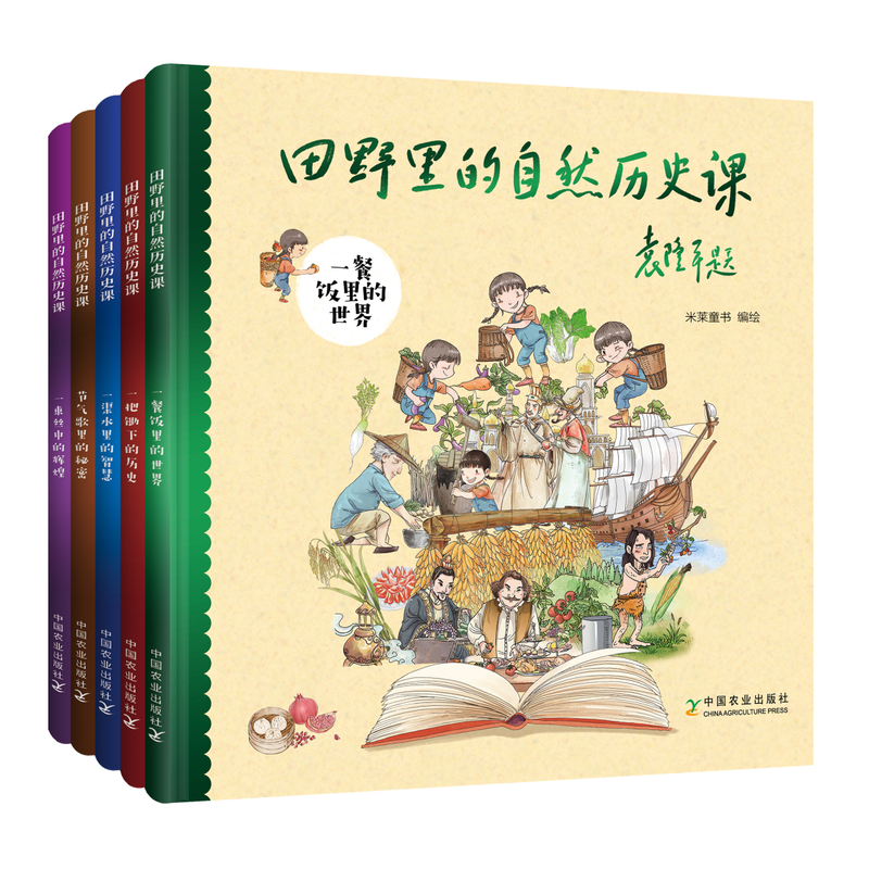 中华五千年文明是一部农耕文化的发展史。《田野里的自然历史课》是由袁隆平院士首次作序推荐,送给全国少年儿童的一套关于中华农耕文明的原创绘本。全套书共分为5册——《一餐饭里的世界》、《一把锄下的历史》、《一渠水里的智慧》、《一束丝中的辉煌》、《节气歌里的秘密》,以小主人公丫丫的视角推进,分别从食材、农具、水利、桑蚕和节气五个维度展现了中国历史文明,及其背后的智慧和知识。