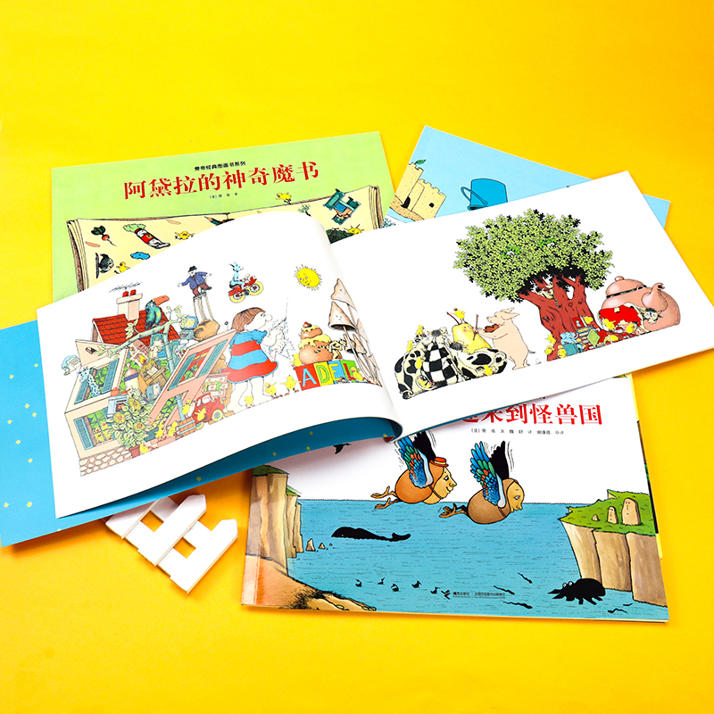 旁帝通过讲述《阿黛拉的神奇魔书》故事的同时,给宝宝别样的认知体验。旁帝绘制了很多奇形怪状、包罗万象的物品(从天上飞的到地上走的,从河里游的到家居用的,从真实的小女孩到毛绒玩具熊,从现实中的到梦境中的),和汽车一般大的香蕉,会长出八只手的交警……琳琅满目物品的排列里,既有不变的认知功能,也有变动的逻辑推理。