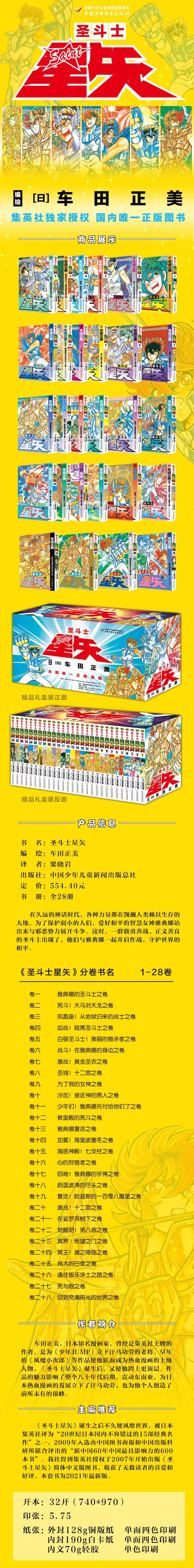 《圣斗士星矢》诞生之后不久便风靡世界,被日本集英社评为“20世纪日本国内不容错过的15部经典名作”之一,2009年入选由中国图书商报和中国出版科研所联合评出的“新中国60年中国影响力的600本书”。我社得到集英社授权于2007年开始出版《圣斗士星矢》简体中文版图书,收获了无数读者的喜爱和好评,本套书为2021年最新版。