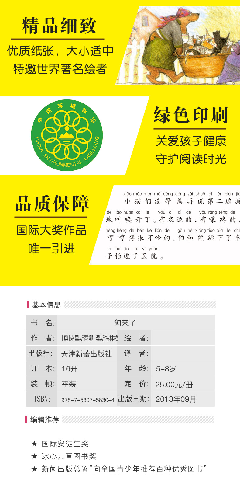 《狗来了》世界经典文学注音版,送给5-8岁孩子的入学礼物!国际安徒生奖作品,冰心儿童图书奖作品!