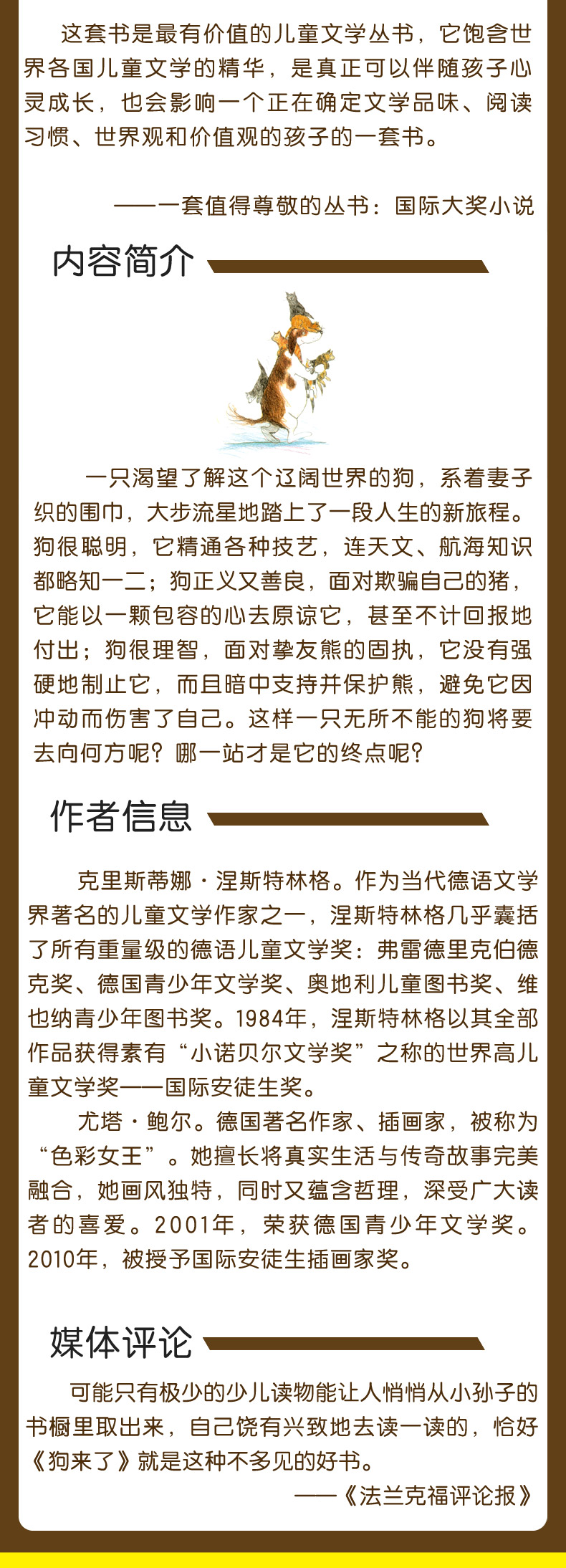 可能只有极少的少儿读物能让人悄悄从小孙子的书橱里取出来,自己饶有兴致地去读一读的,恰好《狗来了》就是这种不多见的好书。