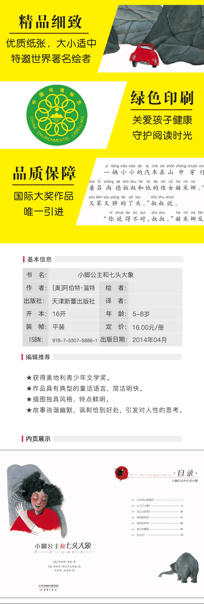《小脚公主和七头大象》世界经典文学注音版,送给5-8岁孩子的入学礼物!获得奥地利青少年文学奖。