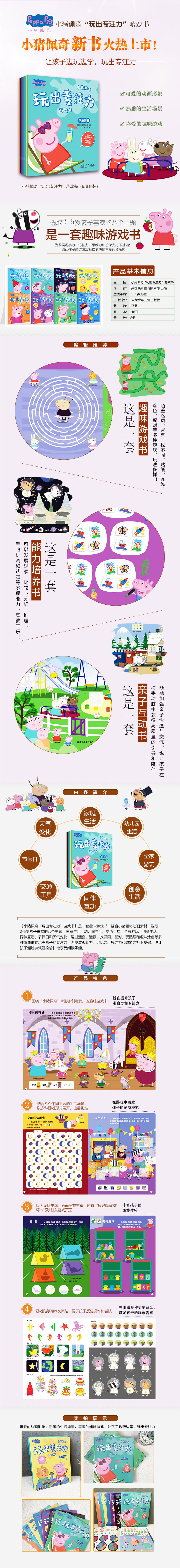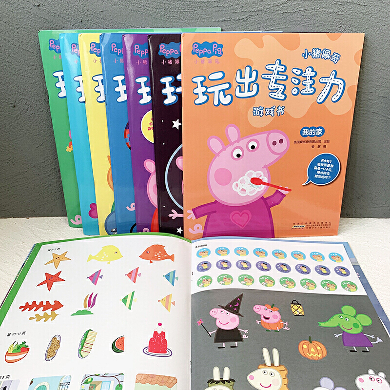 2.这是一套能力培养书,可以发展观察、比较、分析、推理、手眼协调和认知等多项能力,寓教于乐…3.这是一套亲子互动书,既能加强亲子沟通与交流,也让孩子在动手动脑中获得高质量的引导和陪伴!1.围绕“小猪佩奇”IP形象创意编排的趣味游戏书,旨在提升孩子观察力和专注力。