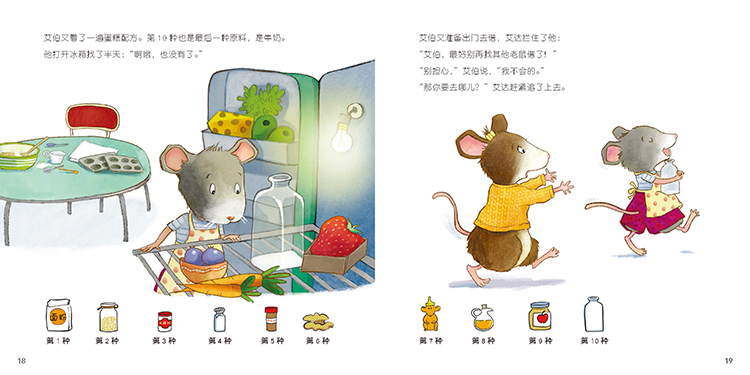 小老鼠艾伯想自己做蛋糕,却发现家里什么材料都没有。于是,他按照制作步骤,一次次去邻居们家借各种材料:首先去尼波太太家借面粉,然后又去借了燕麦片、泡打粉,再去好朋友利奥家借核桃仁……甚至还向大猫球球“借”了牛奶后来,蛋糕做成功了吗?在做蛋糕的过程中,艾伯学会了序数词。