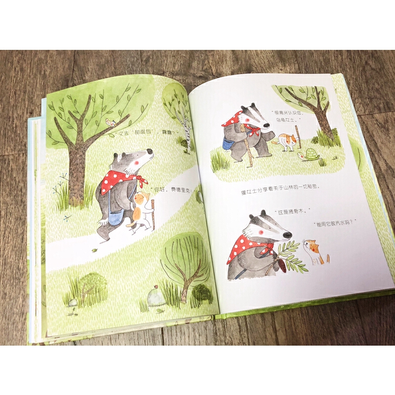 每个星期天,獾女士都会去一个叫“甜面包”的地方。她总是沿着山路一直爬到山顶,在路上采蘑菇,帮助朋友。一天,她在路上遇到了一只害羞的小猫……
