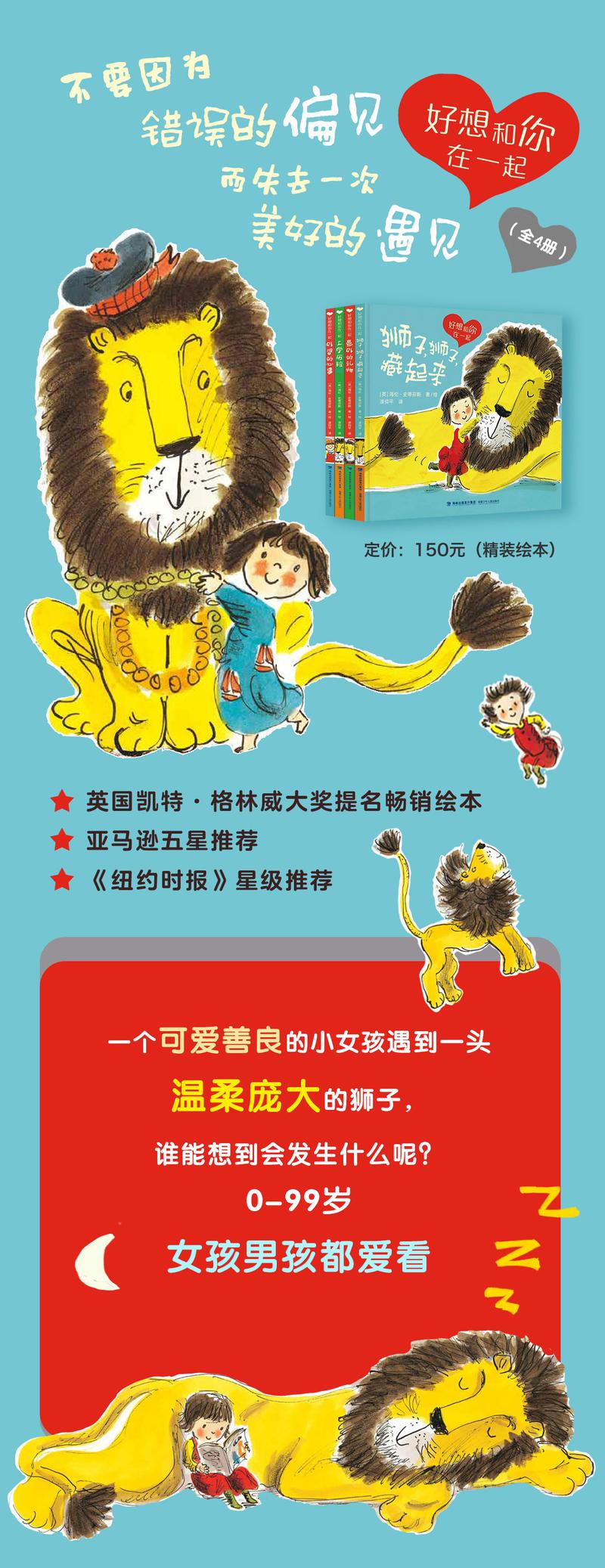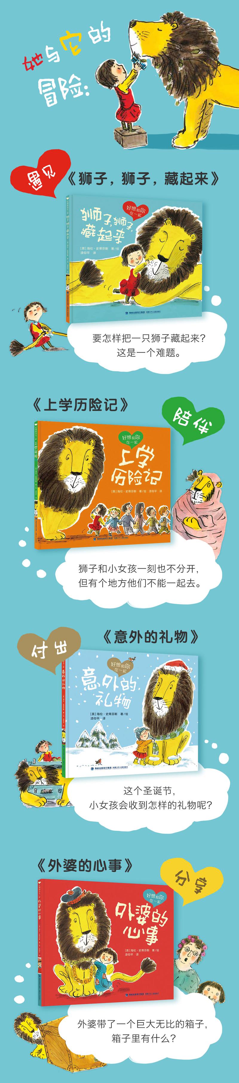 ● 作者笔下的狮子善良温和,它和善的样子让所有的孩子都梦想能够拥有一个这样的朋友。故事充满了温馨与幽默,表达了勇敢与善良这一主题,这是一个看起来会成为经典的故事。