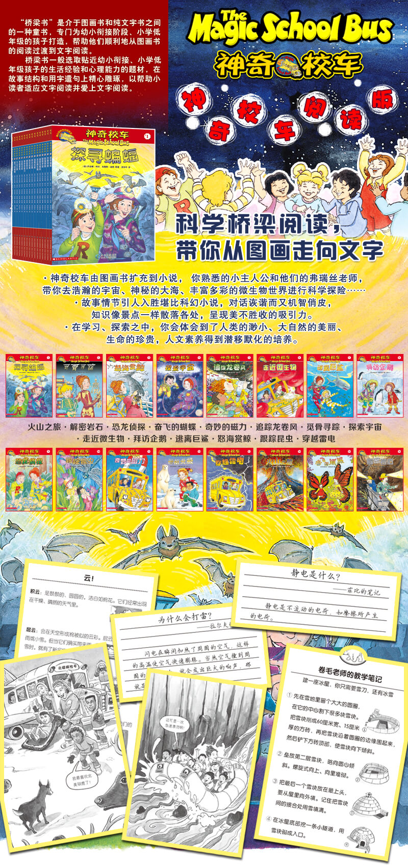 科学始于对未知世界的好奇。好动,好玩,好问,是孩子与生俱来的天性,他们是天生的科学家。搭上神奇校车,读故事,寻谜底,长学问,就有可能成长为真正的科学家。