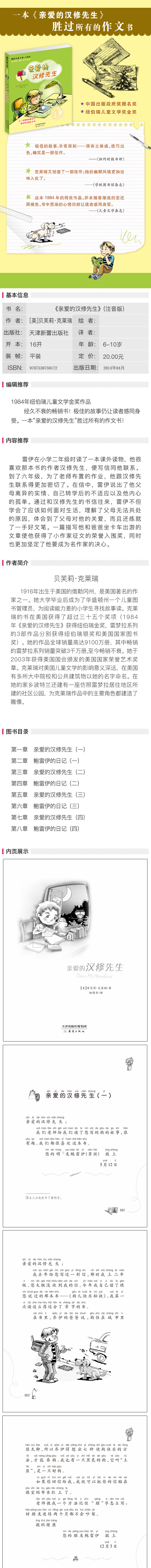 《亲爱的汉修先生》1984年纽伯瑞儿童文学金奖作品,经久不衰的畅销书注音版,故事仍让读者感同身受。一本“亲爱的汉修先生”胜过所有的作文书!