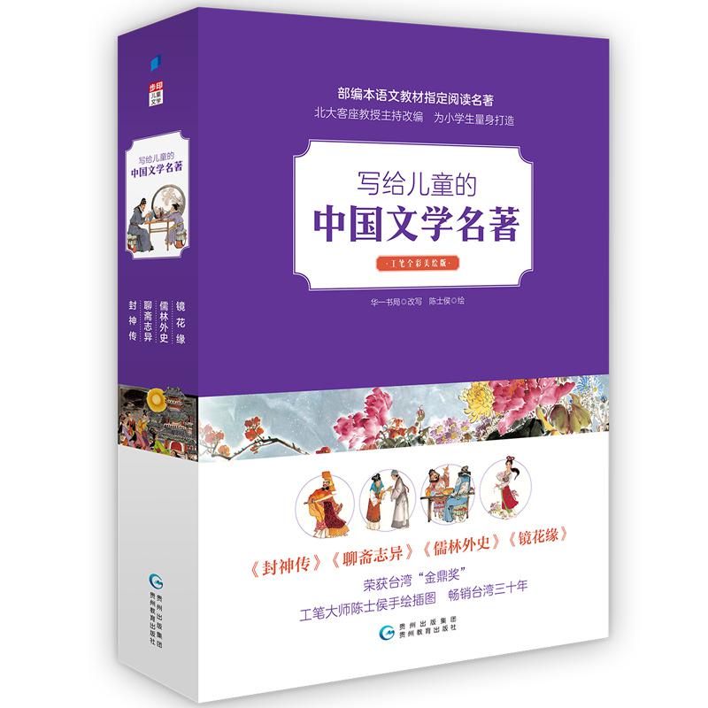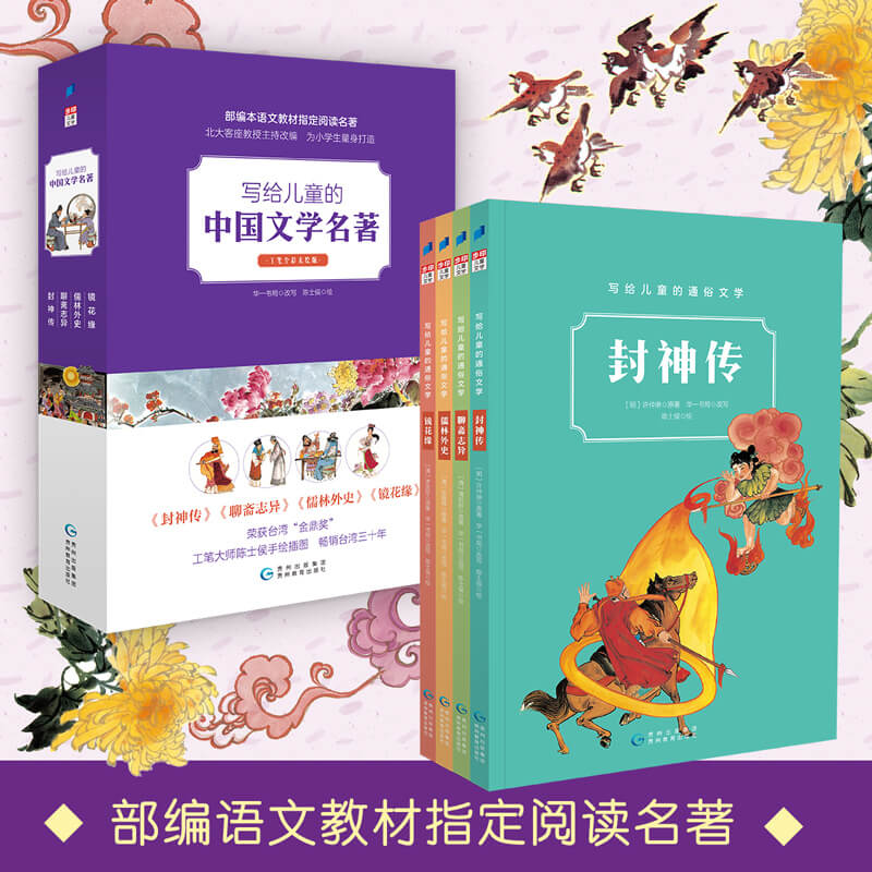 《写给儿童的中国文学名著》全4册:《封神传》《聊斋志异》《儒林外史》《镜花缘》。像童话一样好读的古典文学名著!北大客座教授曾永义担纲审定,儿童文学作家倾力改编,四百余幅手绘插图由名画家陈士侯手绘,荣获“金鼎奖”(步印童书馆出品)