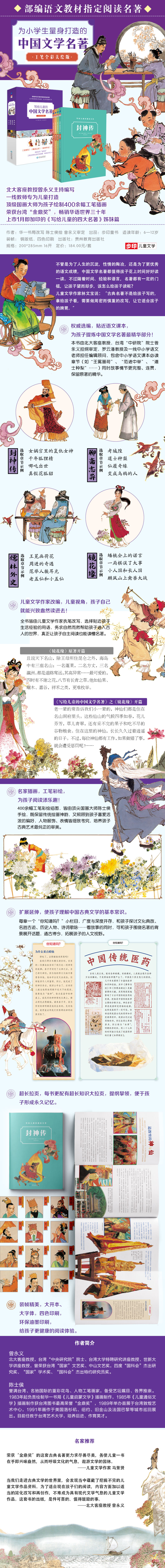 这套书由北大客座教授曾永义担纲审定,数十名儿童文学作家审慎研究、筛选,择取其中精华改编而成。力求贴合儿童的心理特点和理解能力,删除不适合阅读的部分,打造出最适合儿童“脾胃”的中国文学名著。