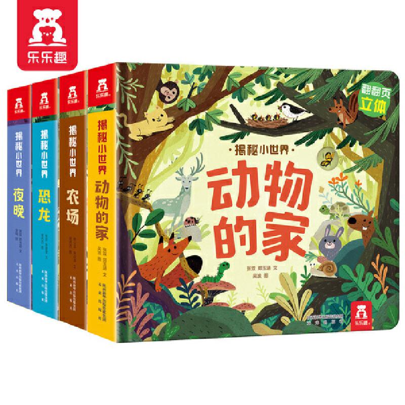 《乐乐趣 揭秘小世界第二辑》0-3岁小手翻翻扣洞洞,探索发现新世界,专为低幼儿童打造的艺术绘本!翻翻+洞洞,创意阅读,锻炼小手灵活性,激发无限想象力;《动物的家》《农场》《恐龙》《夜晚》;乐乐趣揭秘翻翻系列